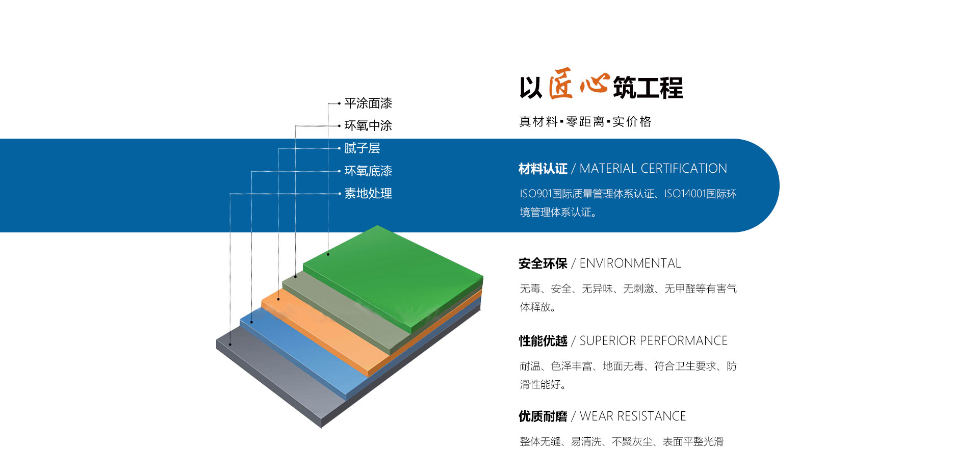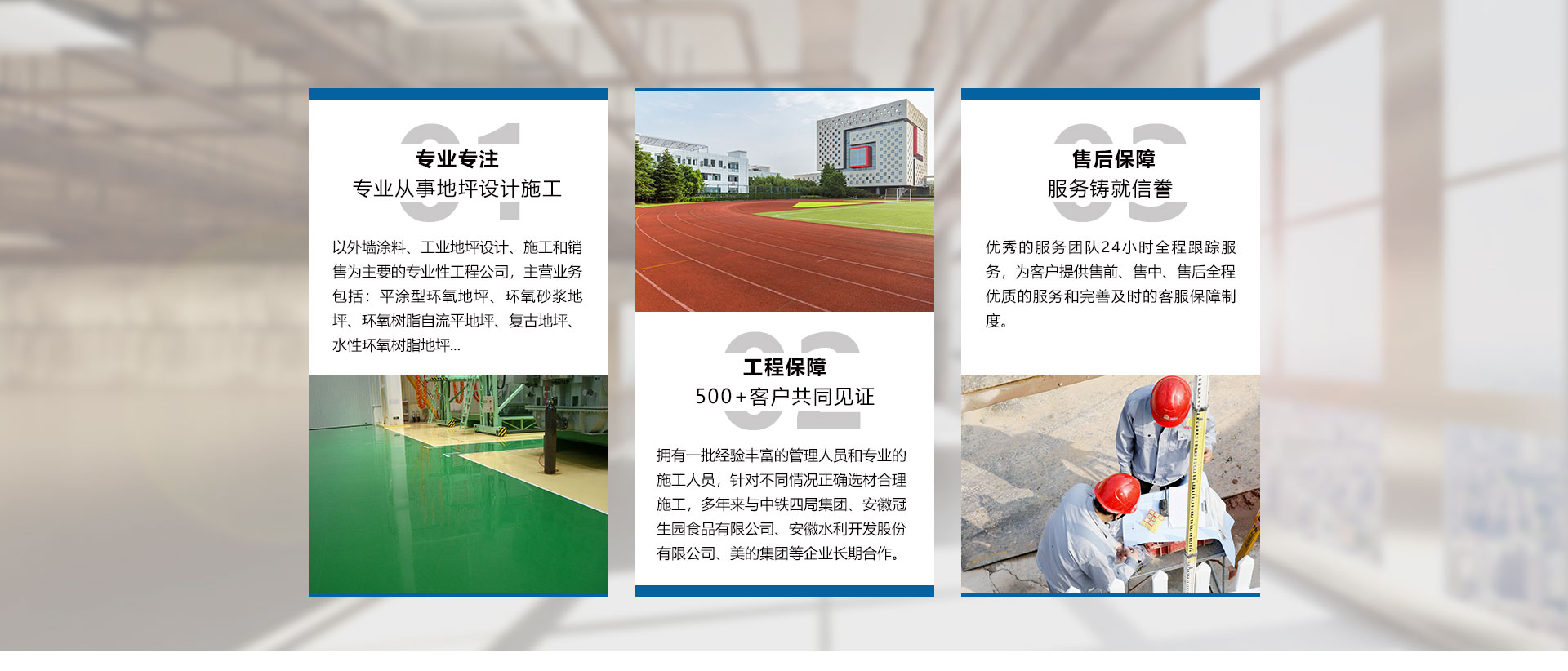 安徽世博裝飾工程有限公司成立于2009年,是一家以外墻涂料、工業(yè)地坪設(shè)計(jì)、施工和銷售為主要的專業(yè)性工程公司、是工業(yè)地坪施工的專業(yè)企業(yè)。公司設(shè)立了售后服務(wù)中心,用戶遍布全國大中小城市,一大批具有標(biāo)志性的長期合作伙伴。“世博公司”環(huán)氧地坪工程,受到了越來越多的不同行業(yè)用戶的好評及青睞。公司擁有一批經(jīng)驗(yàn)豐富的管理人員和專業(yè)的施工人員,以保障產(chǎn)品的成功應(yīng)用,用較小的代價(jià)獲得理想的效果,尤其在地坪涂裝方面優(yōu)勢突出。而且以好的品質(zhì)管理模式,向客戶提供“獨(dú)具魅力”、“性能優(yōu)異”、“質(zhì)量穩(wěn)定”的產(chǎn)品。公司主要產(chǎn)品包括:平涂型環(huán)氧地坪、環(huán)氧砂漿地坪、環(huán)氧樹脂自流平地坪、滾涂型防靜電地坪、自流平防靜電地坪、復(fù)古地坪、水性環(huán)氧樹脂地坪、彩色透水混凝土地坪、壓花壓模藝術(shù)地坪、金剛砂耐磨硬化地坪、混凝土密封固化劑地坪、乙烯基酯重防腐地坪、GEP 標(biāo)準(zhǔn)型地坪、彈性PU運(yùn)動場地坪、塑膠跑道地坪,PVC橡膠地板、停車場地坪、無震...